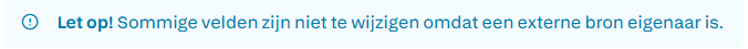 Sommige velden zijn niet te wijzigen omdat een externe bron eigenaar is