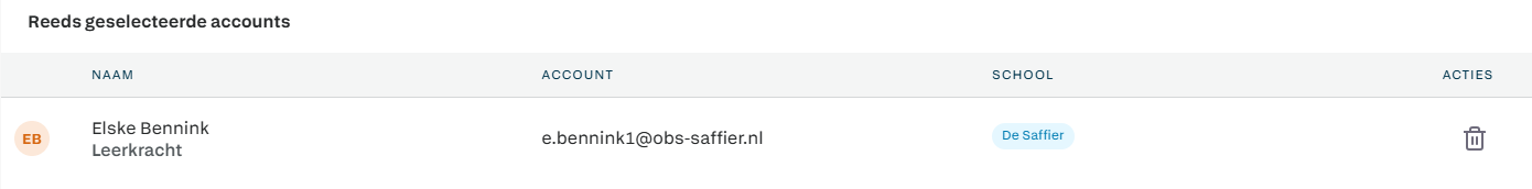In dit voorbeeld blijft het account e.bennink@obs-saffier.nl bewaard, e.bennink1@obs-saffier.nl wordt verwijderd.