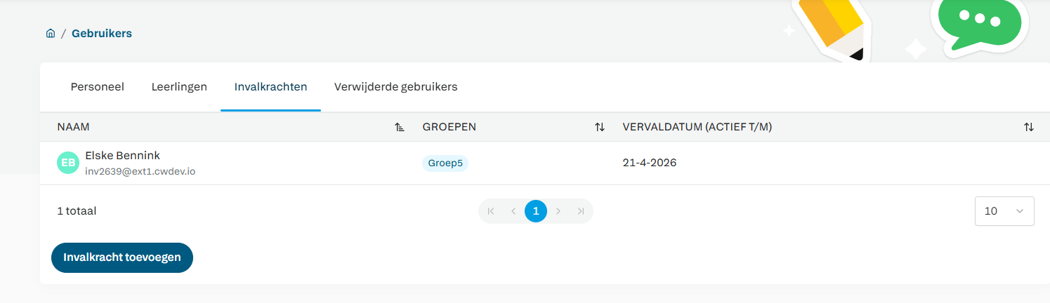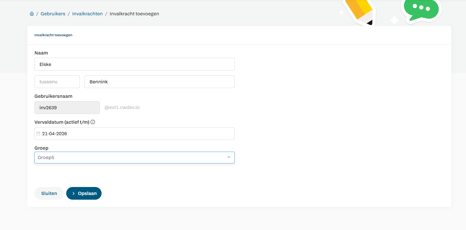 Een invaller die voor langere tijd gaat invallen kan je het beste in het LAS invoeren en aan de groep koppelen om een account te maken.