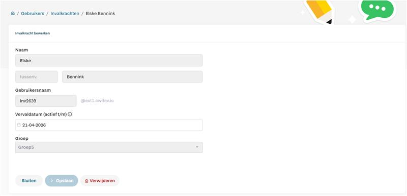 Je ziet een lijst met actieve invalkrachten, klik op het account dat je wil deactiveren.